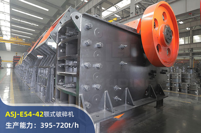 ASJ-E54-42顎式破碎機進料口尺寸1370×1070mm,進料粒度≤1020mm,出料大小≤125mm,電機功率185kw,時產(chǎn)量在720噸左右。
