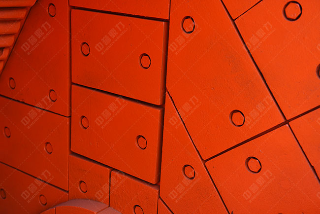 假如反擊襯板的內(nèi)表觀顆粒定做正確,物料的飛行趨勢(shì)將與反擊襯板表觀成近似垂直聯(lián)系,從而較大限度地利用物料動(dòng)能,增強(qiáng)粉碎成效。