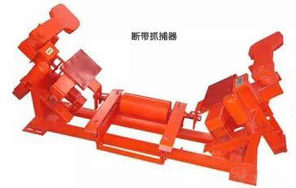 (14) 采用斷帶抓捕器。對于具有較大坡度的上行膠帶機(jī),設(shè)置要的抓捕器是可行的。根據(jù)抓捕器工作原理可分為摩擦棘輪式、滾輪積壓式、楔塊自鎖夾緊式等結(jié)構(gòu)。