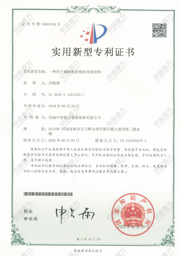 申請人:河南中譽(yù)鼎力智能裝備有限公司(原新鄉(xiāng)市鼎力礦山設(shè)備有限公司)