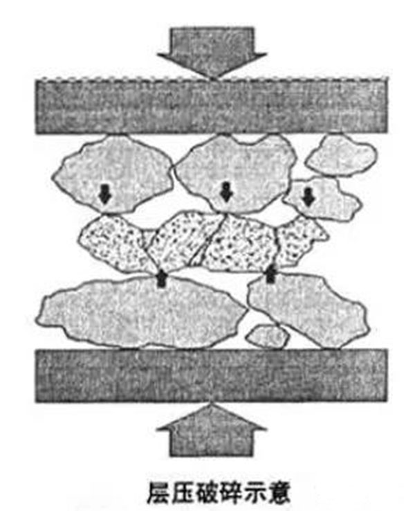 3) 通過適宜的給料設(shè)備布置,可盡量減少物料的析離,達(dá)到均勻擠滿給料,增強(qiáng)層壓破碎效果,減少碎礦單位能耗,生產(chǎn)成本。
