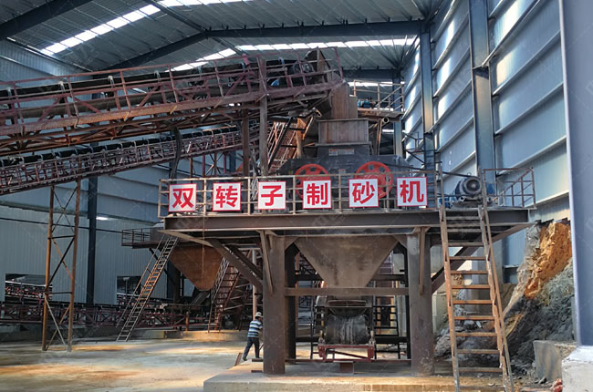 該時產800噸的石灰石制沙生產線配用石灰石重錘式破碎機,不單破碎效率高,而且成品料粒型好,因該項目還有制沙需求,為其配備了構造簡單,破碎能力強的1218雙轉子制砂機,整個生產線不僅節(jié)能,而且還能節(jié)省40%的投資成本!