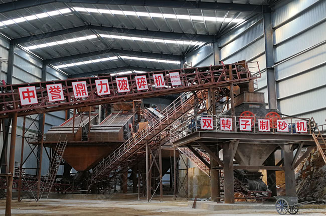 該項目是18年5月份由中譽鼎力承建并投入使用,主要加工石灰石石子、石灰石沙。中譽鼎力結合客戶生產需求,為其配置了1815型石灰石重錘破、1216整形錘式破碎機、石灰石1218雙轉子制砂機以及生產線配套設備。