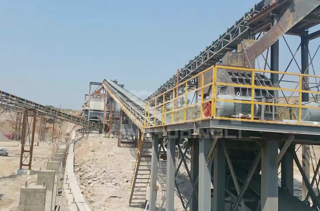 該項目17年投產(chǎn),選用的是DLPCZ1820重錘式破碎機(jī)、DL3YKZ3070振動篩、給料機(jī)等設(shè)備,生產(chǎn)線可對800mm以下的石灰石原料原料進(jìn)行粗細(xì)碎加工,成品料用于建筑、筑路等域。