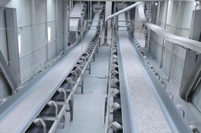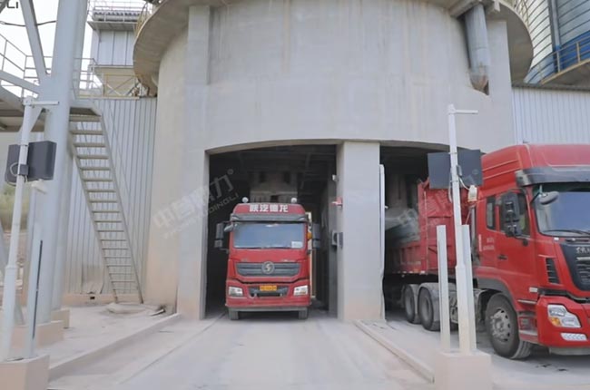 皮帶機(jī)進(jìn)入罐倉(5000噸/個(gè)),某種成品料滯銷時(shí),通過庫下皮帶機(jī),轉(zhuǎn)存到成品緩沖倉,成品緩沖倉下面有一個(gè)通廊,也可以已實(shí)現(xiàn)自動(dòng)裝車。