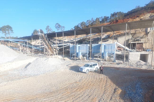 2、兩次破碎工藝,工藝簡(jiǎn)單,還配置有收塵器、噴淋、灑水等環(huán)保裝置,減少粉塵飛揚(yáng)。