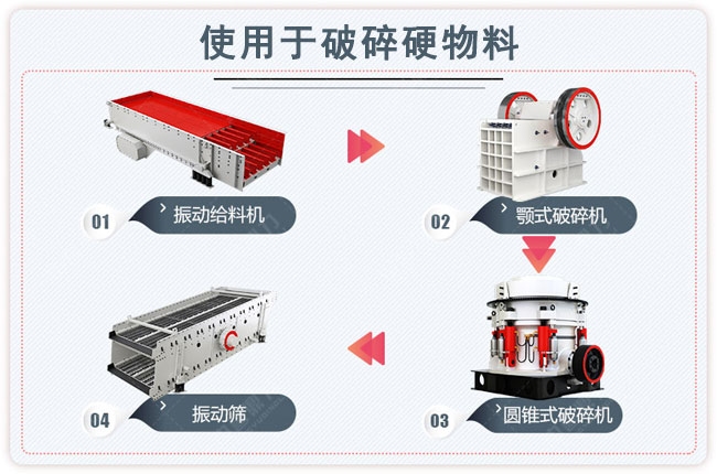 設備方案:ZSW490×110震動喂料機、PE750×1060鄂破機、GYS400圓錐式破碎機、3YK2870篩機。