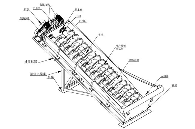 2、嚴格要求進料粒度均勻喂料,否則螺旋洗砂機螺旋葉片會出現(xiàn)磨損或堵塞現(xiàn)象。