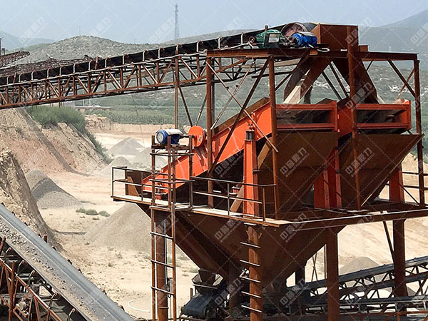 如果采用多路給料,相當(dāng)于增加了篩面的寬度,減少了供給到篩面上的料層厚度,有利于細粒物料很快接觸篩面通過篩孔,同時,地利用了篩面,減少粗顆粒不要的運輸路程,從而提高篩分工作效率。