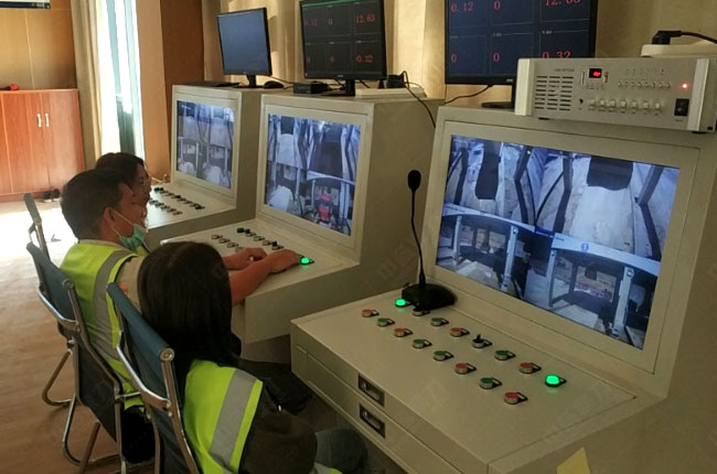 4、自動裝車:卸料裝置會通過流量控制+地磅稱量值變化,自定收放石料,裝車完畢,系統(tǒng)會提示“車號為XXXXX車輛裝載石料XX噸,裝在結(jié)束,請駛離秤臺”;